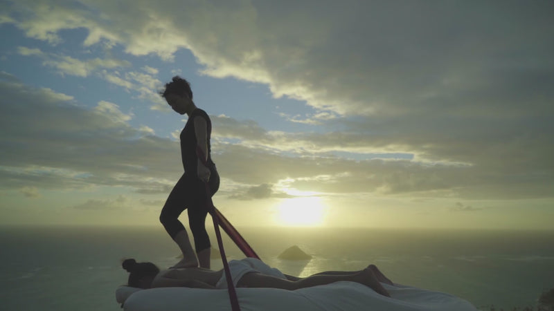 By pulling up on the fabric while applying downward pressure, this added energy is safely and effectively transferred onto the recipient’s body. The combination of gravitational and tensional force with our methods allows practitioners to deliver consistent, oblique pressure to provide a uniquely effective myofascial therapy.